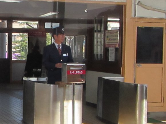 改札に駅員さんが立っている 本州では懐かしい光景 |