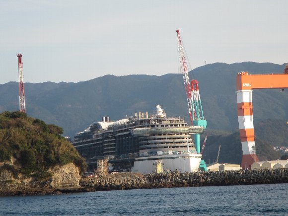 長崎港へ帰還 三菱ドックで建造中の大型豪華客船 |