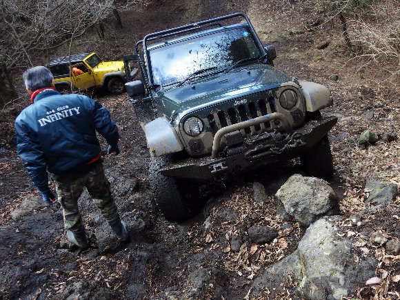 ![]() ノーマルTJ 立ち往生 近日中に 車高アップ、タイヤ交換をするとか・・・。 |