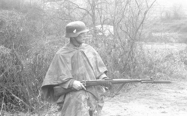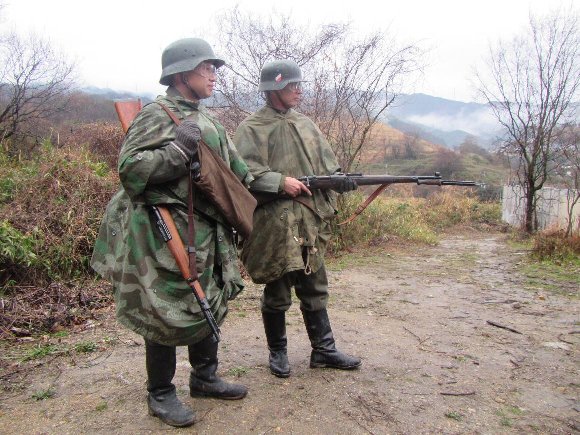 雨足がおさまらないので、電動ガンのMG34の使用を諦め、 小銃手に装備変更。