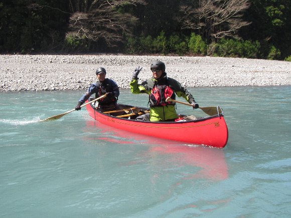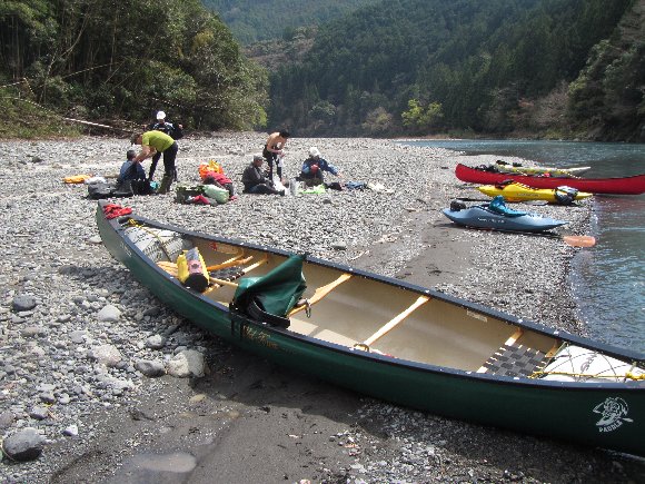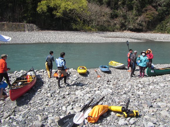 ときたま 風が吹いたが そう強くもなく、 無事に青橋下の上陸地点に到着。