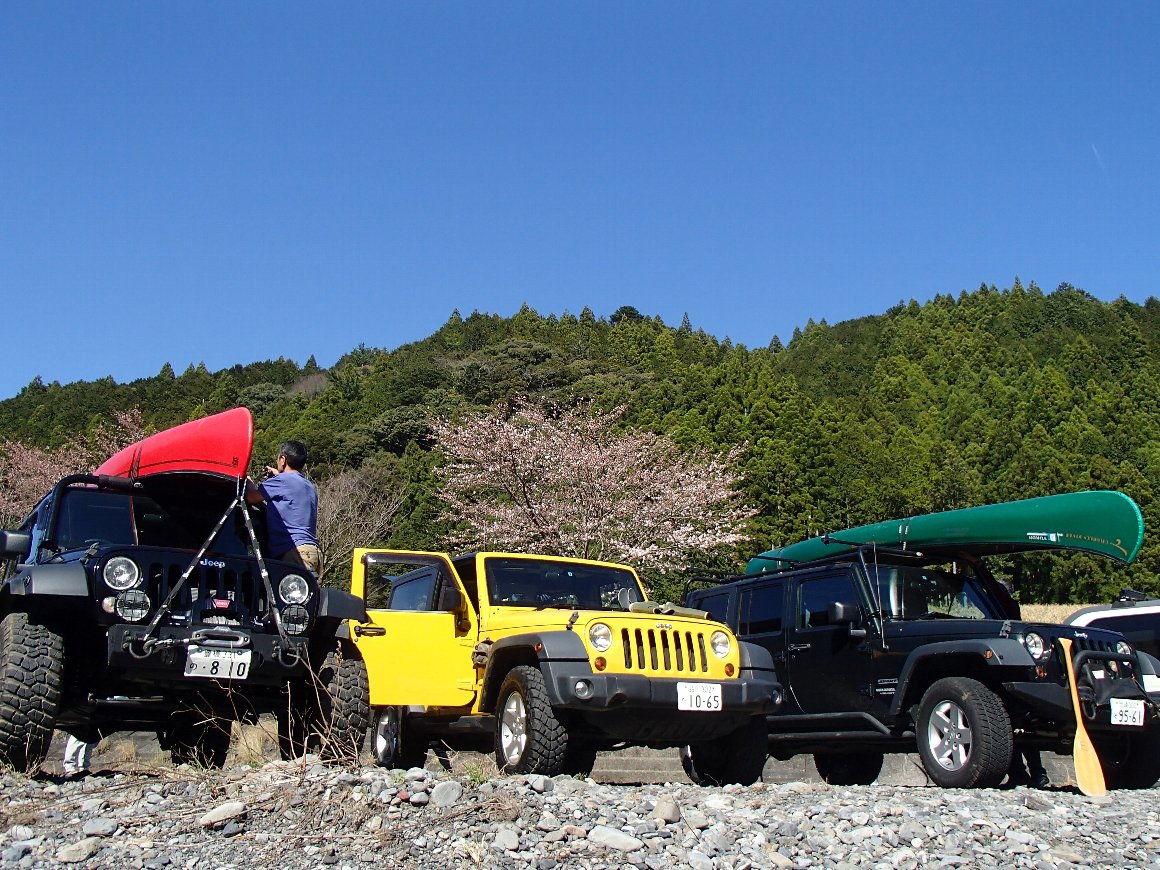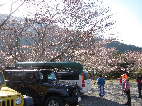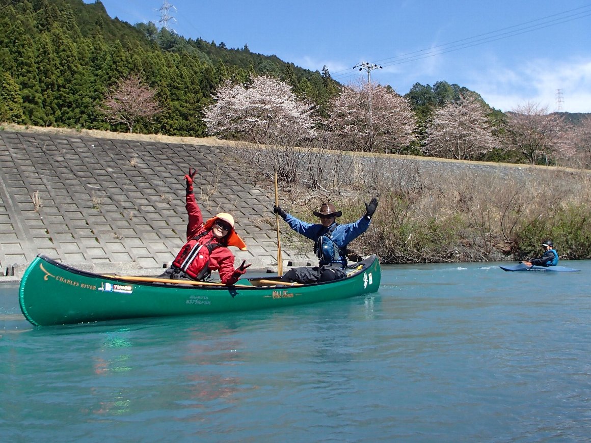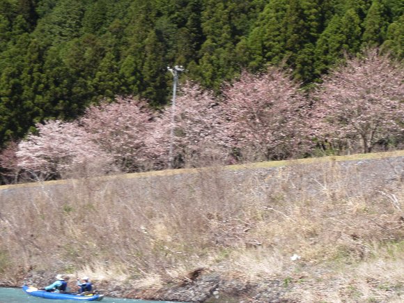 初漕ぎは、天気も水量もよく、暖かく、桜も咲き。