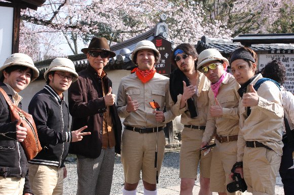 探検隊の扮装の若者達を発見したので、