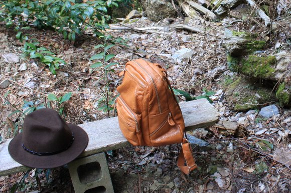 帽子を脱ぎ、リュックを下ろして休憩 |