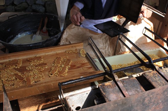 そらまめ焼煎餅の実演 |