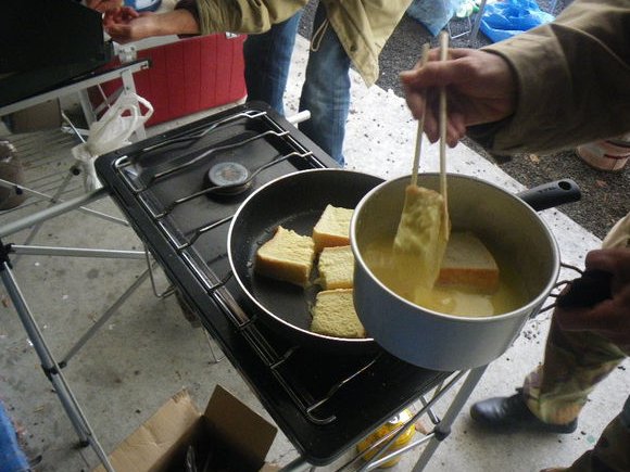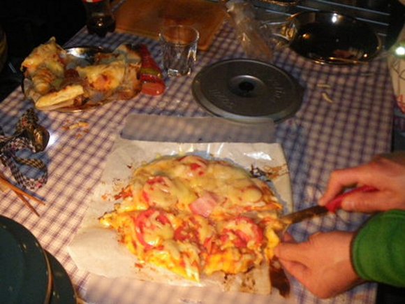 | 星さんの日記 昨夜はマイミクのちかさん夫妻が愛知県豊田市に来る用事のおまけに12日に気田川を漕ぎましょうかと言う企画をマイミクのTERUさんが立ち上げ、 前夜からキャンプで集合と言うのを見ていてもたってもいられなくなり、日曜日にかみさんと桜を見に行く約束をしていたので、 土曜日の夕方からプチ家出を決め込み、勝手ながら夜会だけに参加させていただきました。 家を午後2時に出て気田川のキャンプ場に到着したのが午後4時過ぎ。 すでに風のハルさん、KICHIさんが見えておりその後もけけさん、まめぼうさん達が集まり始めました。 もけけさんが見えたところで宴会用のテーブルセッティングが始まります。 今回11日夕食、12日朝食はファイアーマスターのもけけけさんが作ってくださったのです。 私とハルさんは宴会用のお酒の試飲(?)に余念がありません。 今回、レモンジーナ割が意外とツボ。 何故かレモンジーナ多かったなぁ。 しかしテーブルが並び始めたところでにわかに雨が振り出し、屋根のある宴会スペースへ移動です。 遊んでいる私達?をよそに夕食の準備をしていただいているところ。 その横ではKICHI家のピザ屋さんが。 子供に作らせるスタイルは良いなぁと。。。 そうこうしている間にしましまさん、ちかさん夫妻を迎えに行かれたTERUさんが到着。 吃驚したことに、TERUさんが足を痛めておられ、どうやら朝のサーフィンで痛めたとの事、 お酒は控えるということで酒好きの我々にとっても大きな痛手です。 そして最後にhi-deさんが到着したちころで、晴れて乾杯が! かなりの大人数に楽しい?。 知多牛バーベキュー キムチ鍋であったかいんだから グラタン有り 私と言えばハルさんにどんどんお酒をつくって貰い、 微酔い加減で次から次へとでてくる御馳走に幸せな気分でした そして一通り食べ終わったところで焚火の宴へと。 焚火はやはりアウトドア最高のイベントですね。 みんな楽しそう。。 もちろんマシュマロを炙っていただいたり。。 そしてファイヤーマスターが満を持して出して来たのが、石焼きハンバーグ 予めファイヤーマスターが探しておいた石を焚火で炙りそこへハンバーグを。 これがお腹いっぱいなのにいくらでも頂ける美味しさ。 そして宴も終り皆就寝へ。 私は寝たのが午前1時45分頃 でもすぐに朝がやってきちゃった。。 皆さんも朝が早くって6時頃には起き出してきて珈琲を頂いております。 昨夜の雨が嘘の様な清々しい朝。気田川はこうでなくっちゃ! そしてファイヤーマスターもけけさんは朝からやってくれます。www フレンチトースト、美味 お腹が一杯になったところで、残念ながら私はここで帰る事に。 ちょうど入れ違いに参加されたやおなさんと入れ違いに帰ってきました。 今回お食事の面倒を見てくださったファイヤーマスターもけけさん、あまりヲタ話できませんでしたがまた今度よろしくお願いいたします。 企画してくださったTERUさん、楽しいひと時をありがとうございました。 今度飲む時はお互い万全の体調で呑み明かしましょうね! ハルさん、KICHIさん、hi-deさん、肉丸さん、しましまさん、ちかさんわたるさん、 そして今回一緒に漕げなかったやおなさん、マイミクではないので伝わらないかもしれませんが、 初めてお目にかかったまめぼうさんまたよろしくお願いいたしますね。 楽しかった |