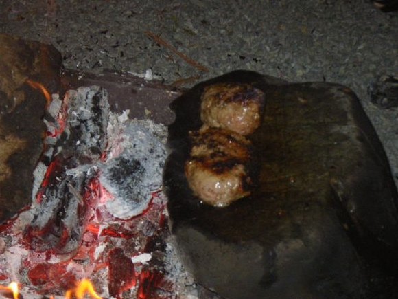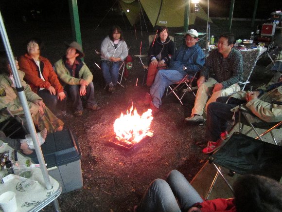 焚き火を囲み |