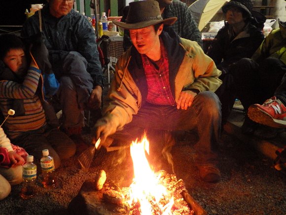 慌てて、焚き火のセット