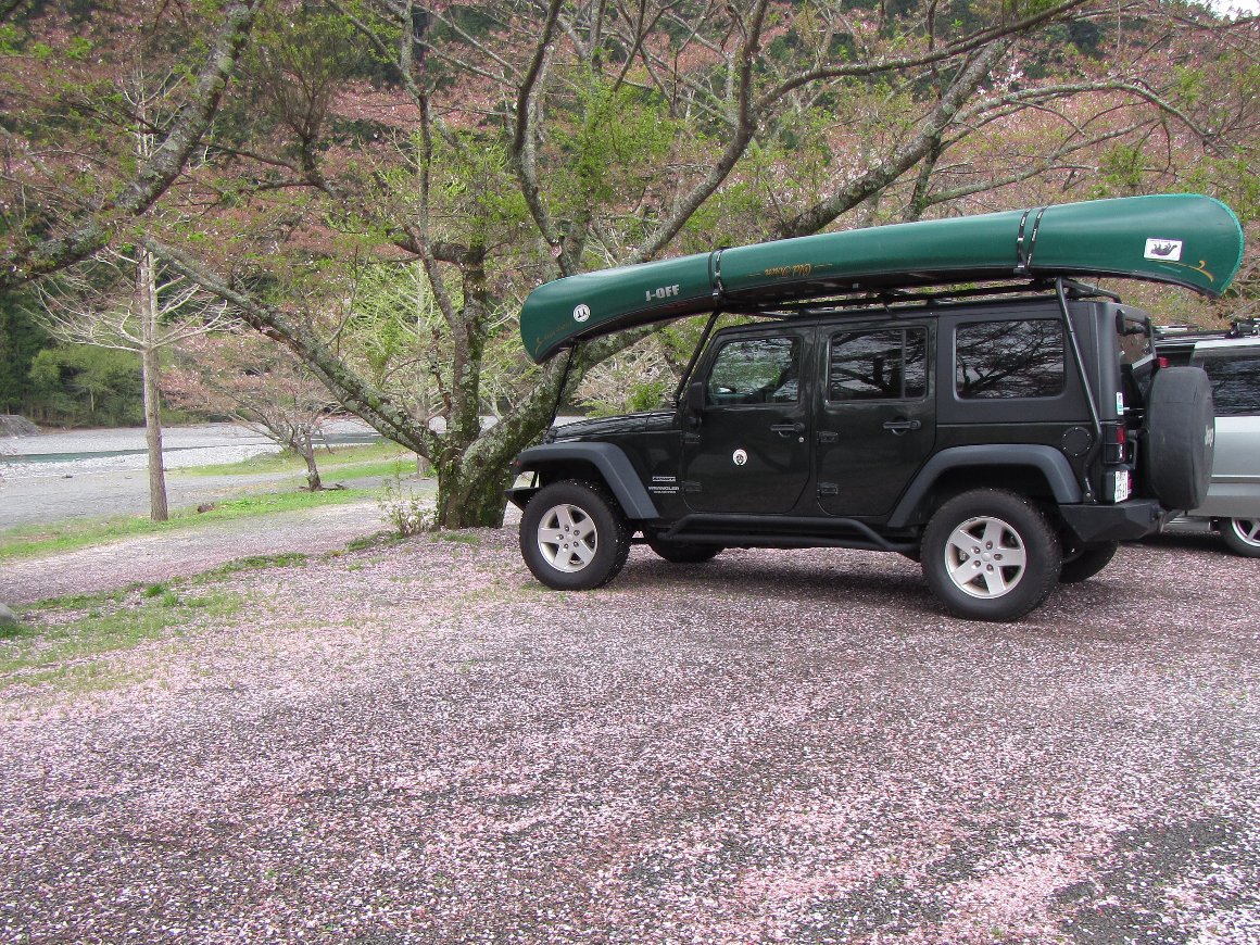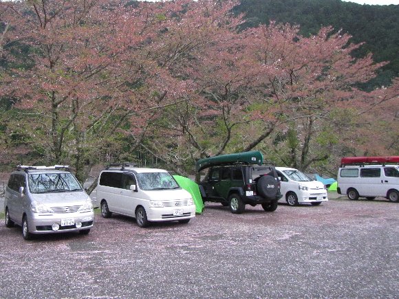 15時前に下社前キャンプ場に到着 桜の絨毯 |