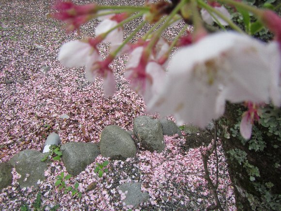 うららかに、 散りゆく桜に舞う桜 つもる桜は いと悲し かな。 |