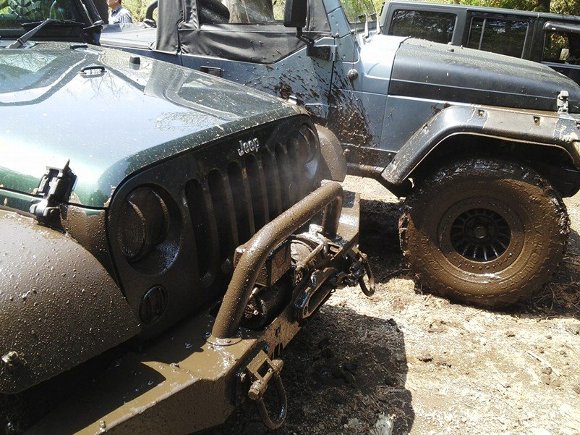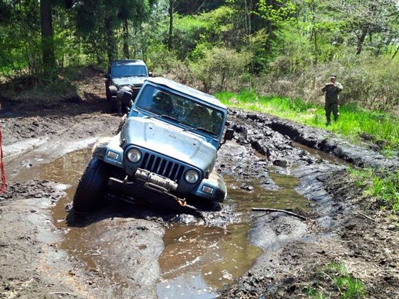 初参加のルビコンX 早速泥につかまる |
