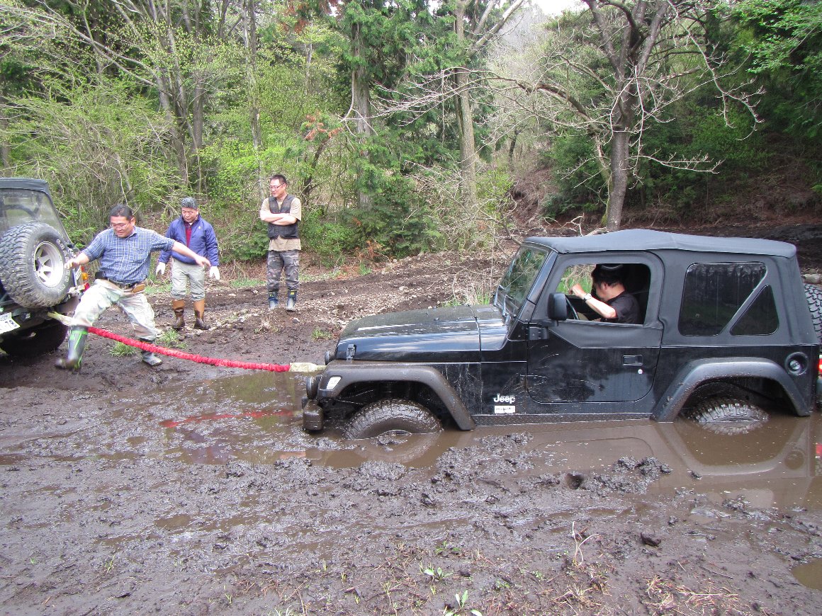 雨が少なめで干物の泥は、ヌタヌタ、ドロドロで滑り、ハマりまくり、 ウィンチ、 カーロープの大活躍。