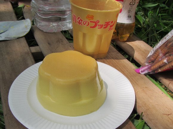 ベースに戻って どでかい 黄金プッチンプリンを皆で食べる |