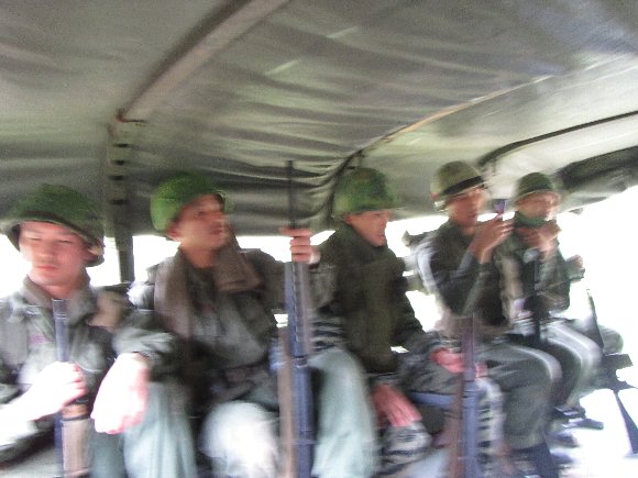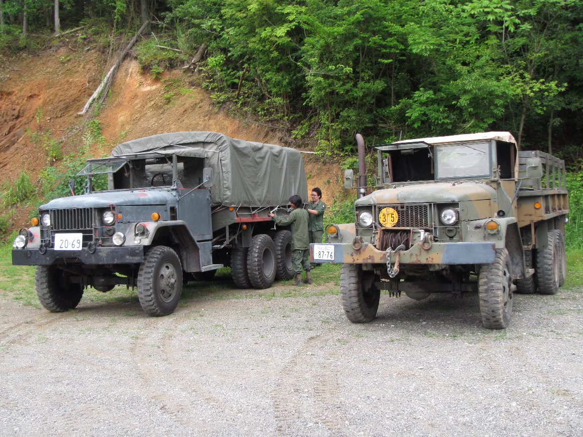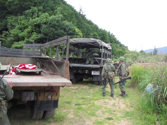 2台のトラックに乗車 |