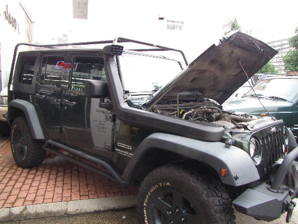 昨年も数社の4駆ショップに問合せをしたが、ルールキャリーの基部がシュノーケルに干渉するため取り付け不可能との返事だった。