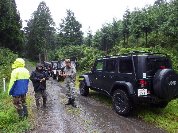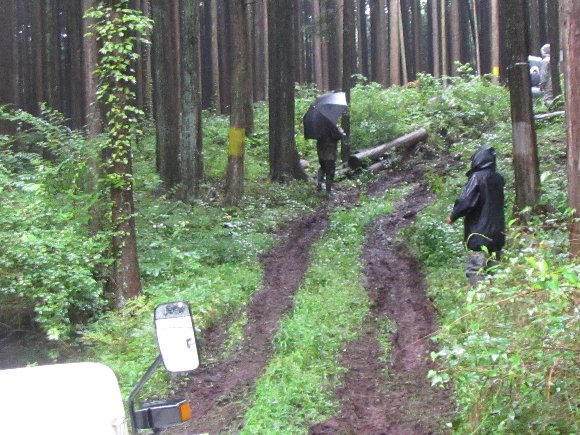 雨の中集合、林道へと向かう。