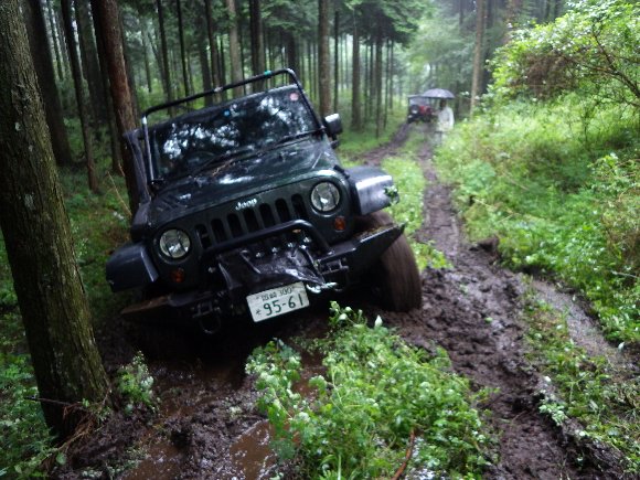 しかし、雨でぬた泥になっている道に 私のJKアンリミは埋まってしまい、行動不能に・・・・。