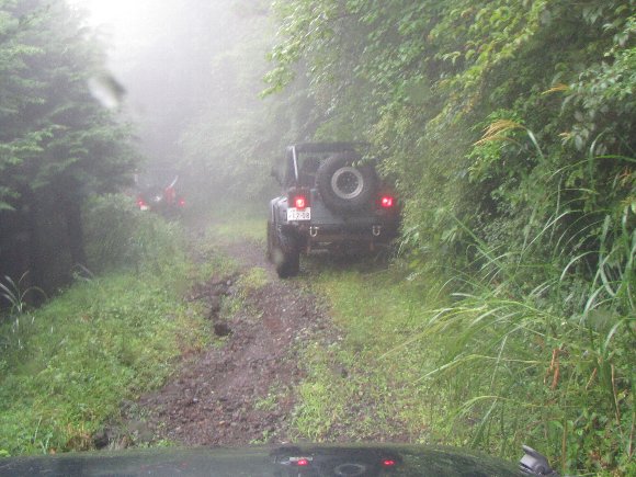 雨の林道へと進行 |