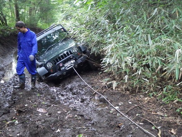 前方の樹を利用してウィンチ脱出 |