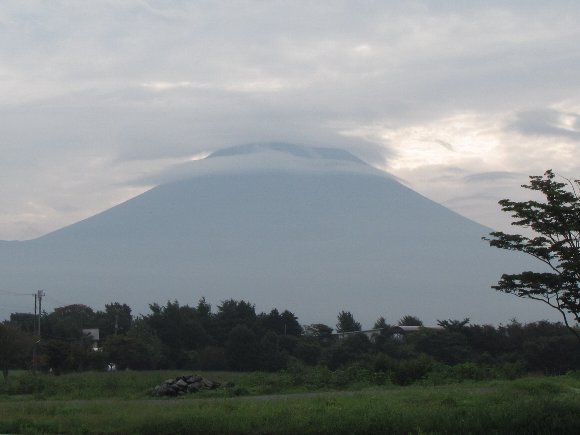 笠をかぶった富士山 午後から雨の予報 |