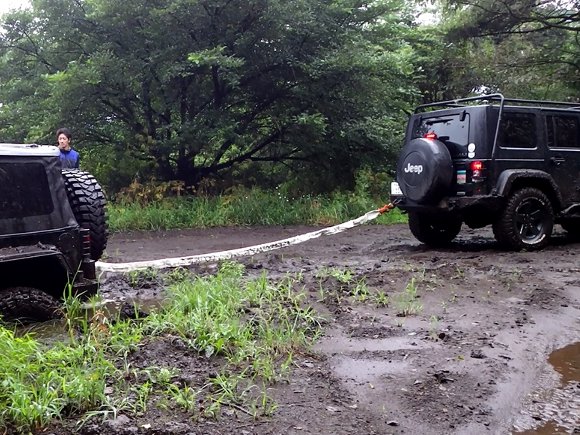 先行車 (TERUさん)にフックをかけ ウィンチング |