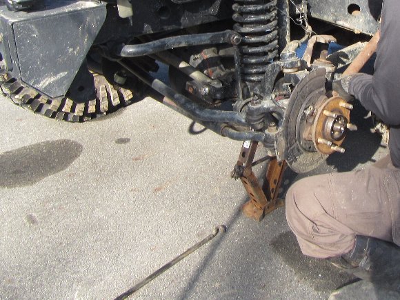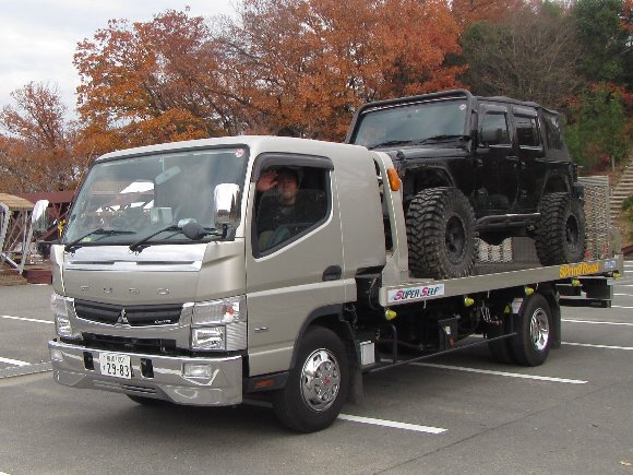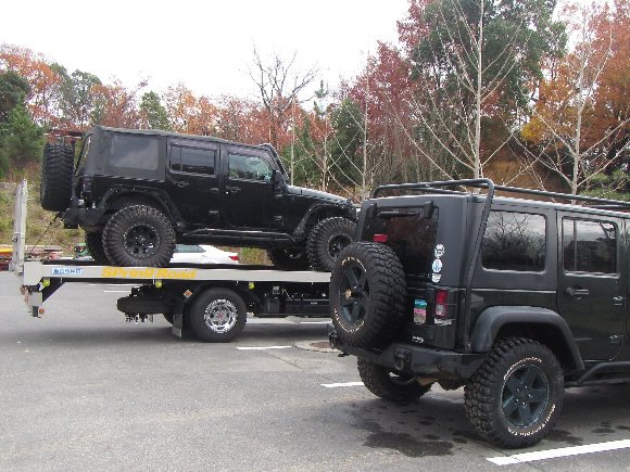 シャフトを抜いても、走行はしない方が無難との 四駆ショップの電話アドバイスで、積車を待つ事に。