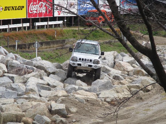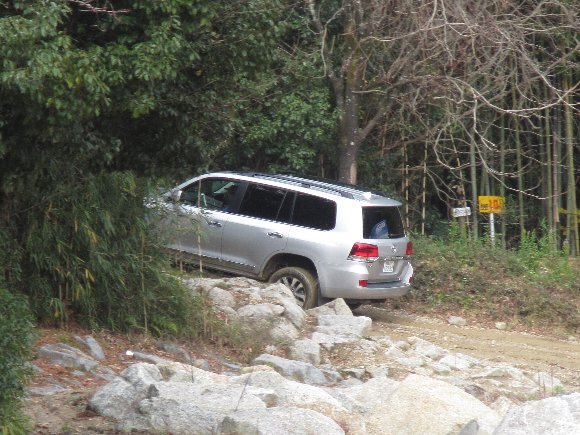 トライアルコース 胸突き八丁では、タイヤが浮くほどの溝で苦戦。