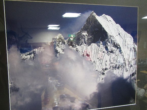 食堂にあった、ヒマラヤ・マチャプチャレの写真 アンナプルナベース方向から |