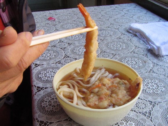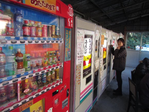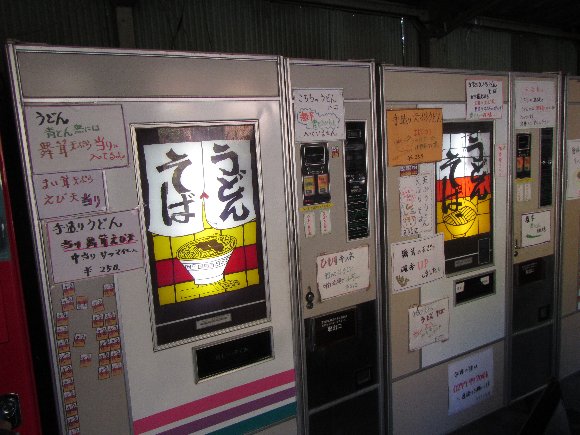 TVでも紹介される、美味しいうどんの自販機があり、幸運な人はえびフライ入りだとか・・・。