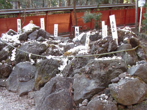 日光連山への願いを書いた石を積み祈願、数百年の大木への祈願など、等 ec.