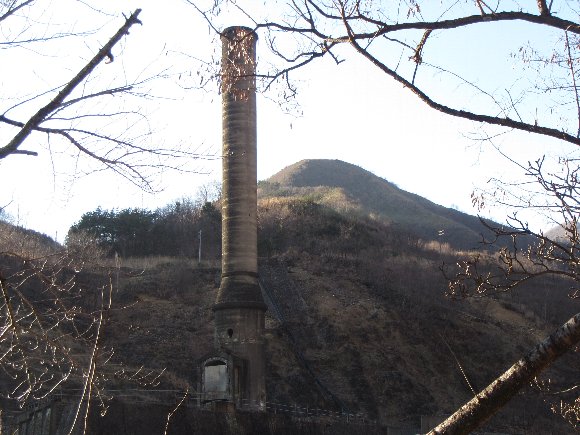 足尾銅山 精錬所跡に今も残る巨大煙突 |