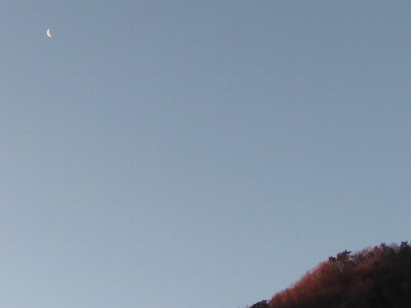 露天風呂から 朝日の山と 三日月 |