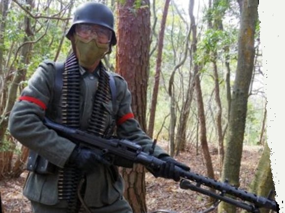 武器は、 MG34軽機関銃 アサヒファイヤーアームズ製のものに、マルイのAKユニットを組み込んだもの。
