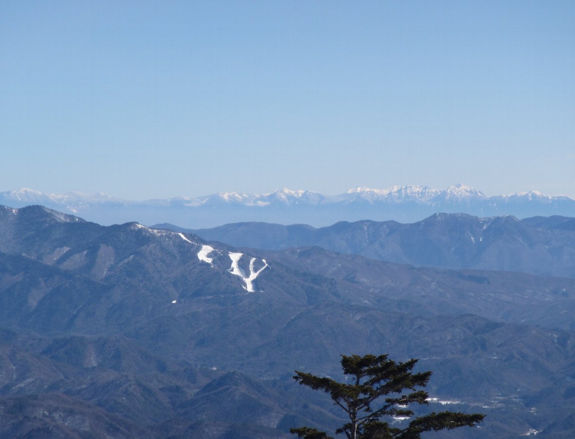 ![]() きそふくしまスキー場の向こうに、八ヶ岳 北横岳から 天狗岳、 硫黄岳、 横岳 そして 主峰 赤岳 や 南の権現岳まで 全てが判別できる |