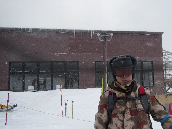12時すぎたら曇り、 13時には雪が降ってきた。 |