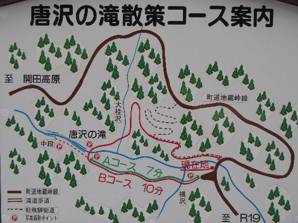 そこに、唐沢の滝があり 遊歩道もある。