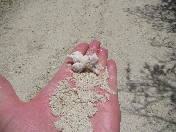 白い、細かい砂 珊瑚のかけらだろう |