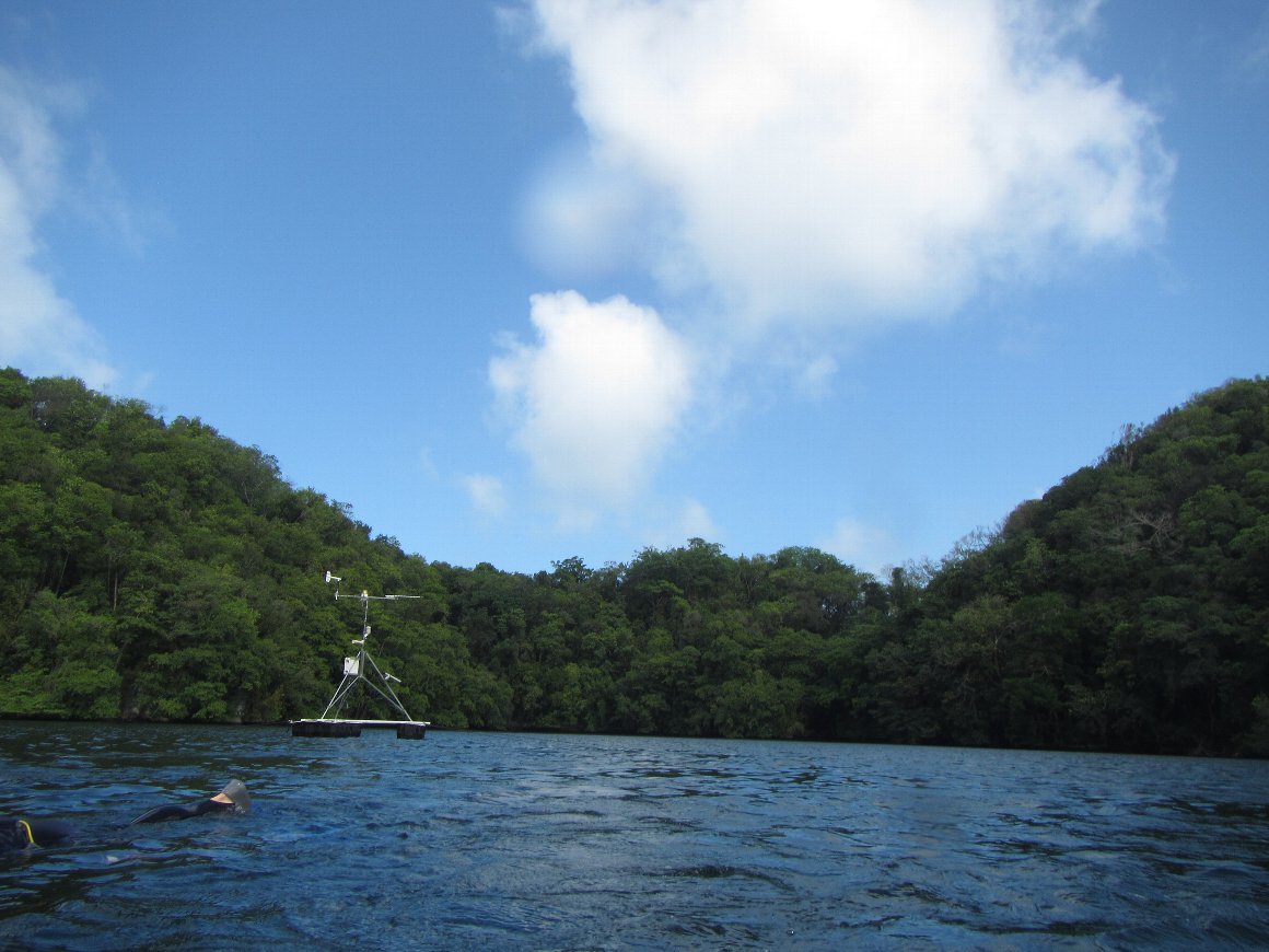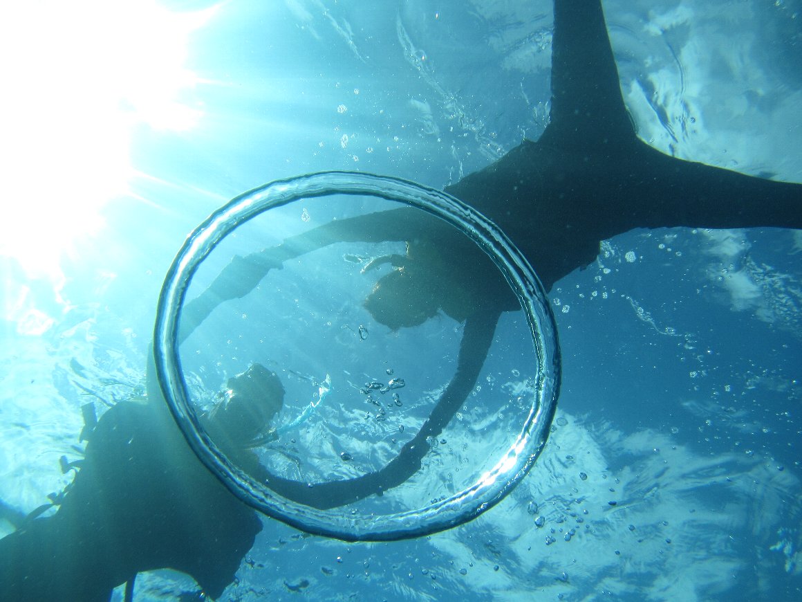 ガイドさんが水中で作った空気の輪 写真を撮ってもらう 水上にいるのは私たち。