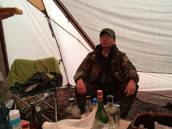 朝6時すぎても強雨は収まらず、仲間がいる隣の大型テントに移動できず、しょうがないので寝続ける(笑)