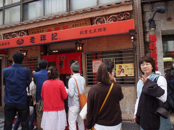 人気の豚まん屋で行列にならび |