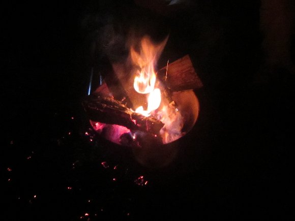 16時から飲み始め、 3本の ボトルも空に近くなってきて 夜も更け たき火を囲んでのんびりと