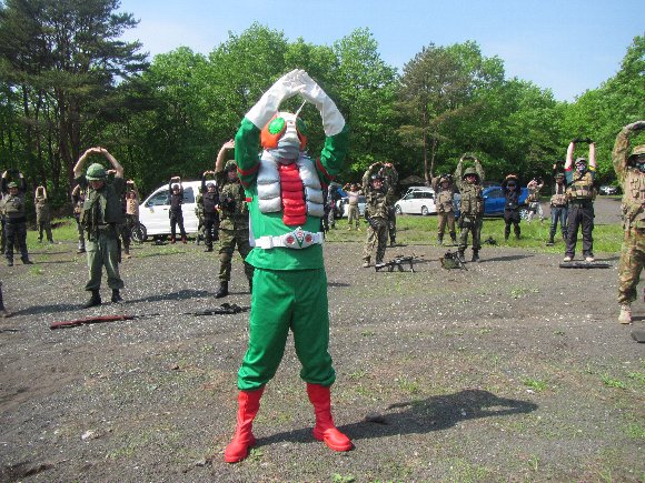 開会式前の 準備体操 を皆と 仮面ライダー |