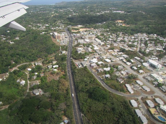 グアム国際空港を 18時50分 発 パラオ・コロール着 20時00分着 (所要時間 2時間10分 時差1時間あり、 パラオは日本と時差はない)