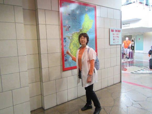 セントレア 11:30フライト グアムへ16:05着 (所用時間3時間35分 グアムと1時間の時差があるため、)