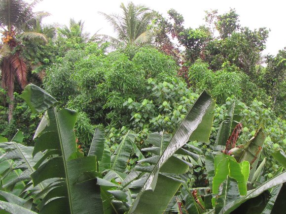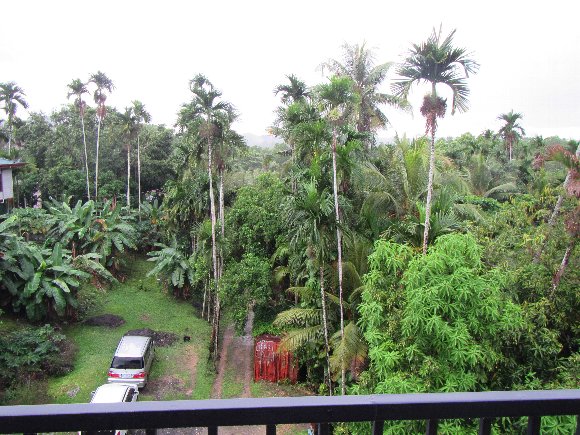 部屋の窓を開けると そこは熱帯ジャングルヤシの実やバナナが実っている |
