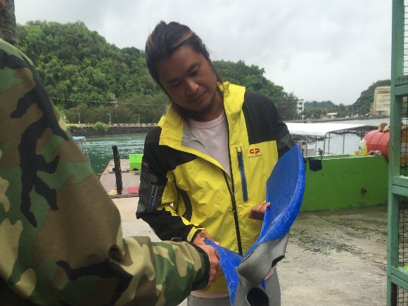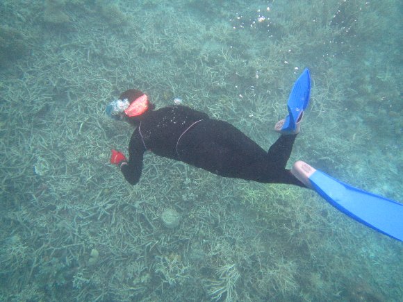 途中のシュノーケルポイントで ジャックナイフ潜行の練習。
