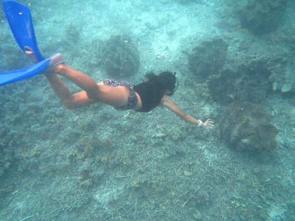 ガイドさんの見事な潜行 海底に見えるのはシャコガイ |