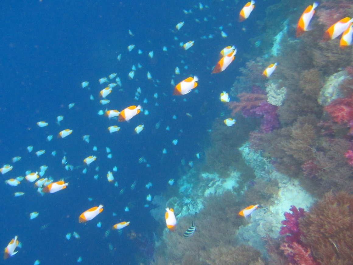 ニュー・ドロップオフ のチョウチョウウオの群 稚魚から育っているのだろうか?