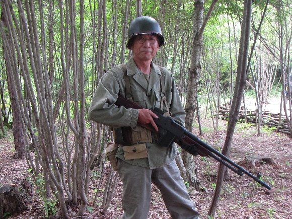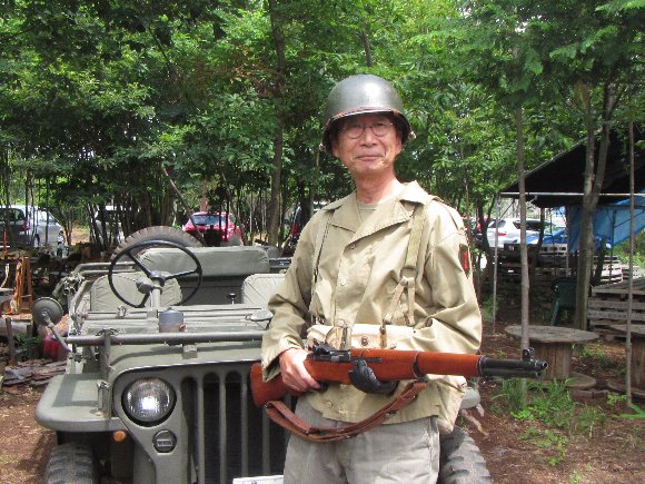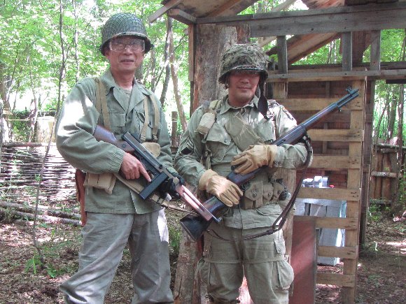 ![]() 午後の後半は マルイ トンプソンM1A1 電動ガン ヘルメットはプラ製 隣りでM1ライフルを持っているのは Mr.銀ちゃん |