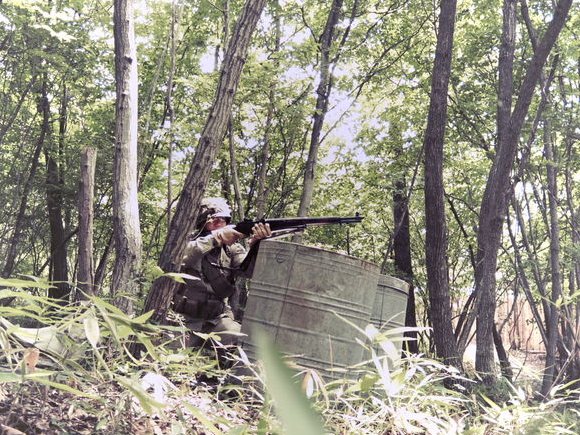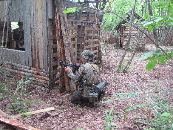 午後の後半は、やや疲れてきたので、ヘルメットはプラ製レプリカに、武器は マルイ、トンプソンに変更して使用。